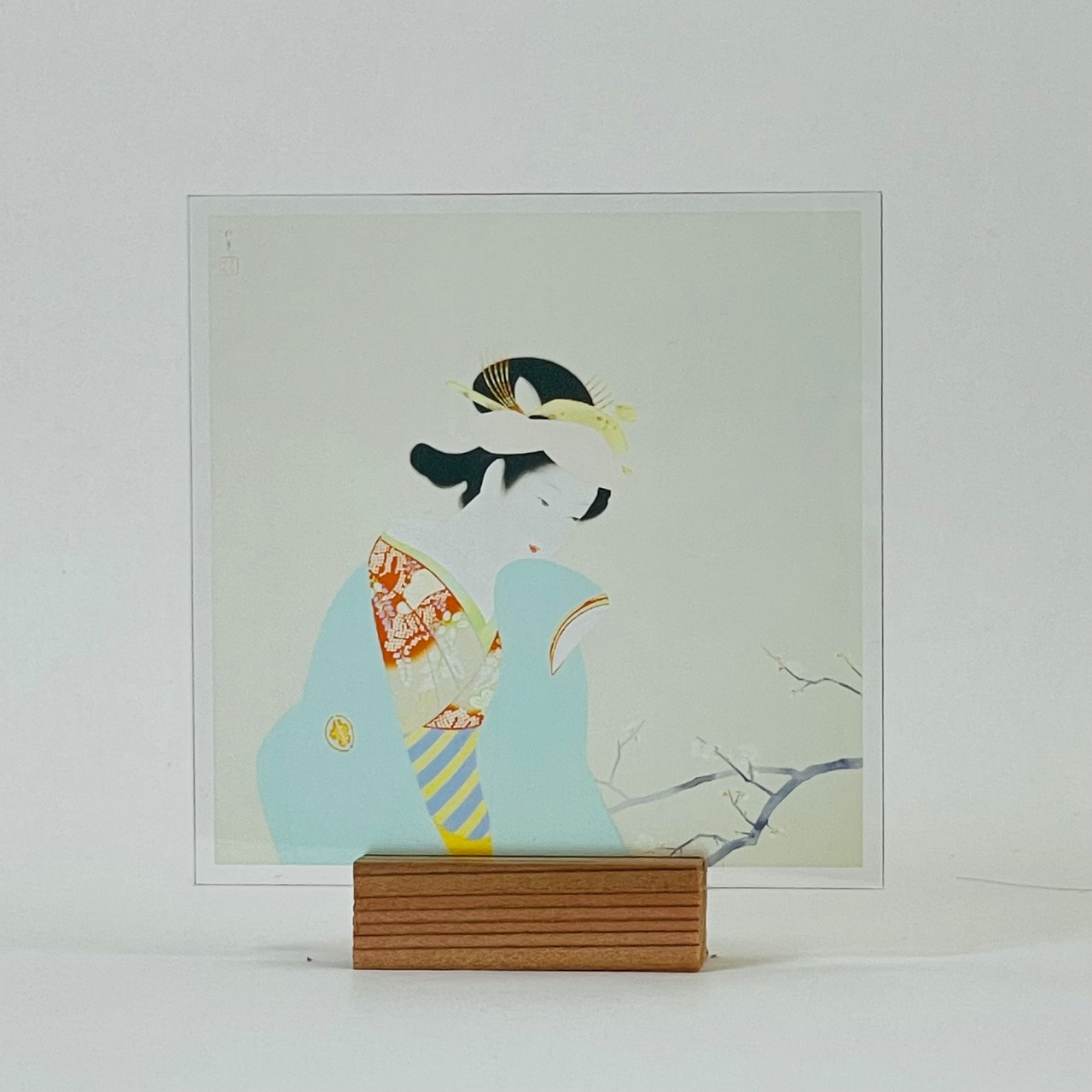 春の香りに包まれるような、ほのかに色づく優雅な女性像。