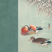 A harmonious pair of Mandarin ducks rests by the water, depicted with K?son’s signature elegance and color.