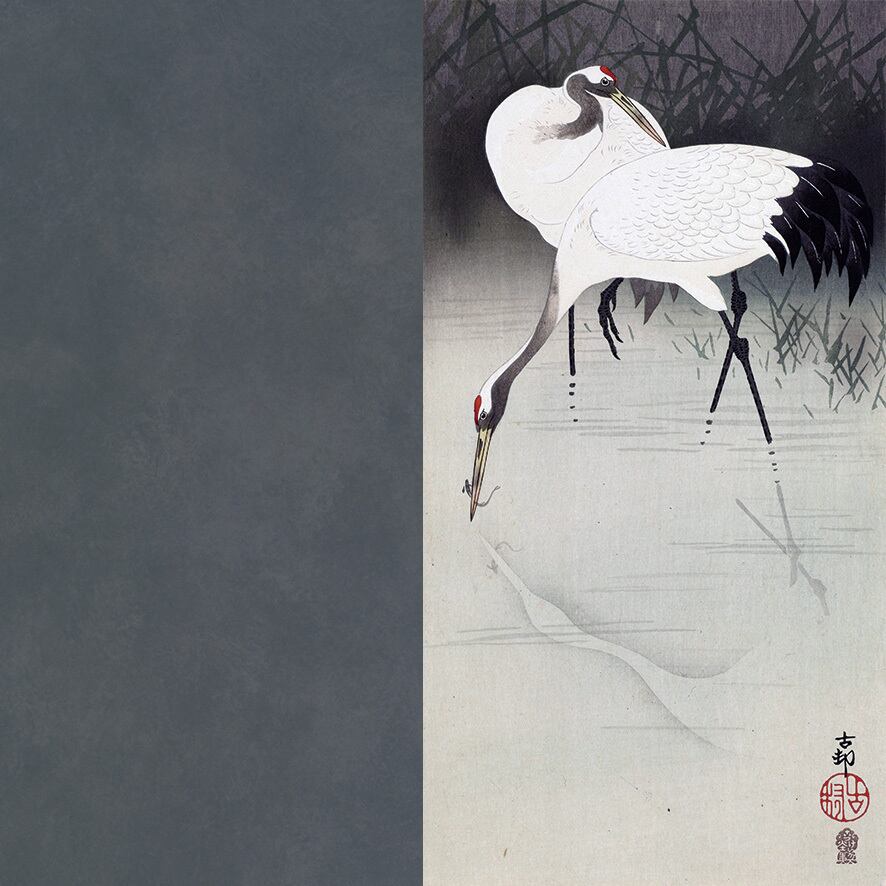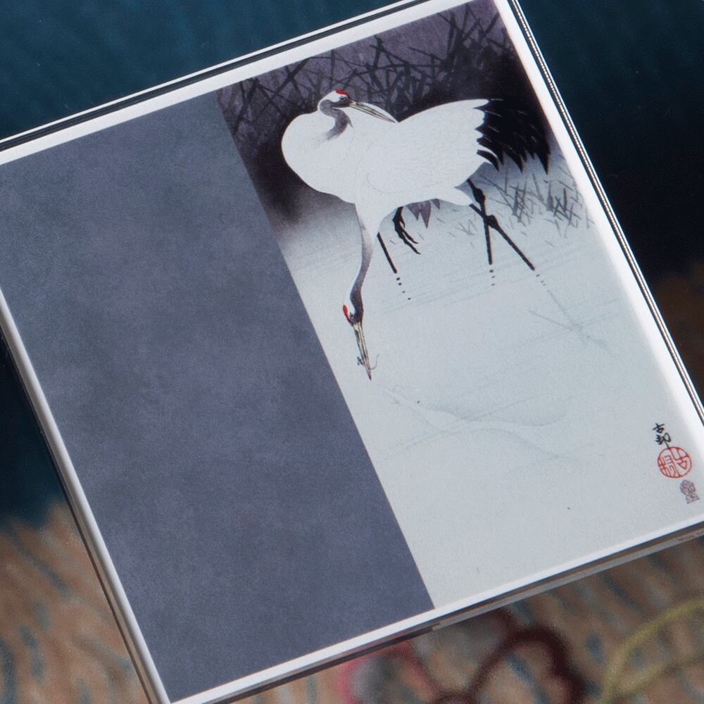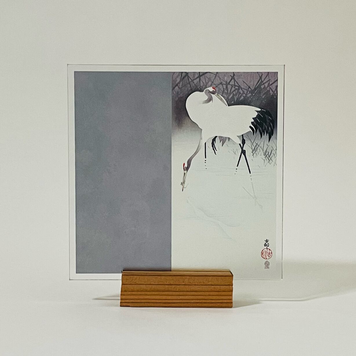 長寿と吉祥を象徴する丹頂鶴。古邨ならではの繊細な筆致が光ります。