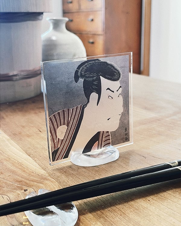 写楽の最高傑作とも称される一枚。迫力のあるポーズと強い眼差しが、観る者に迫ります。