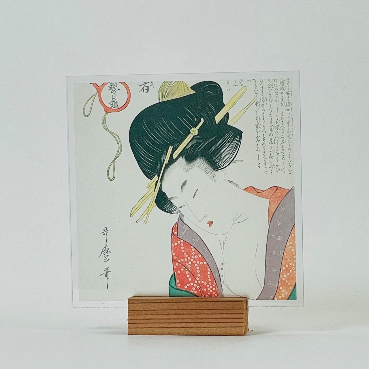 皮肉と風刺が込められた教育的浮世絵。女性の姿を借りた教訓作品です。