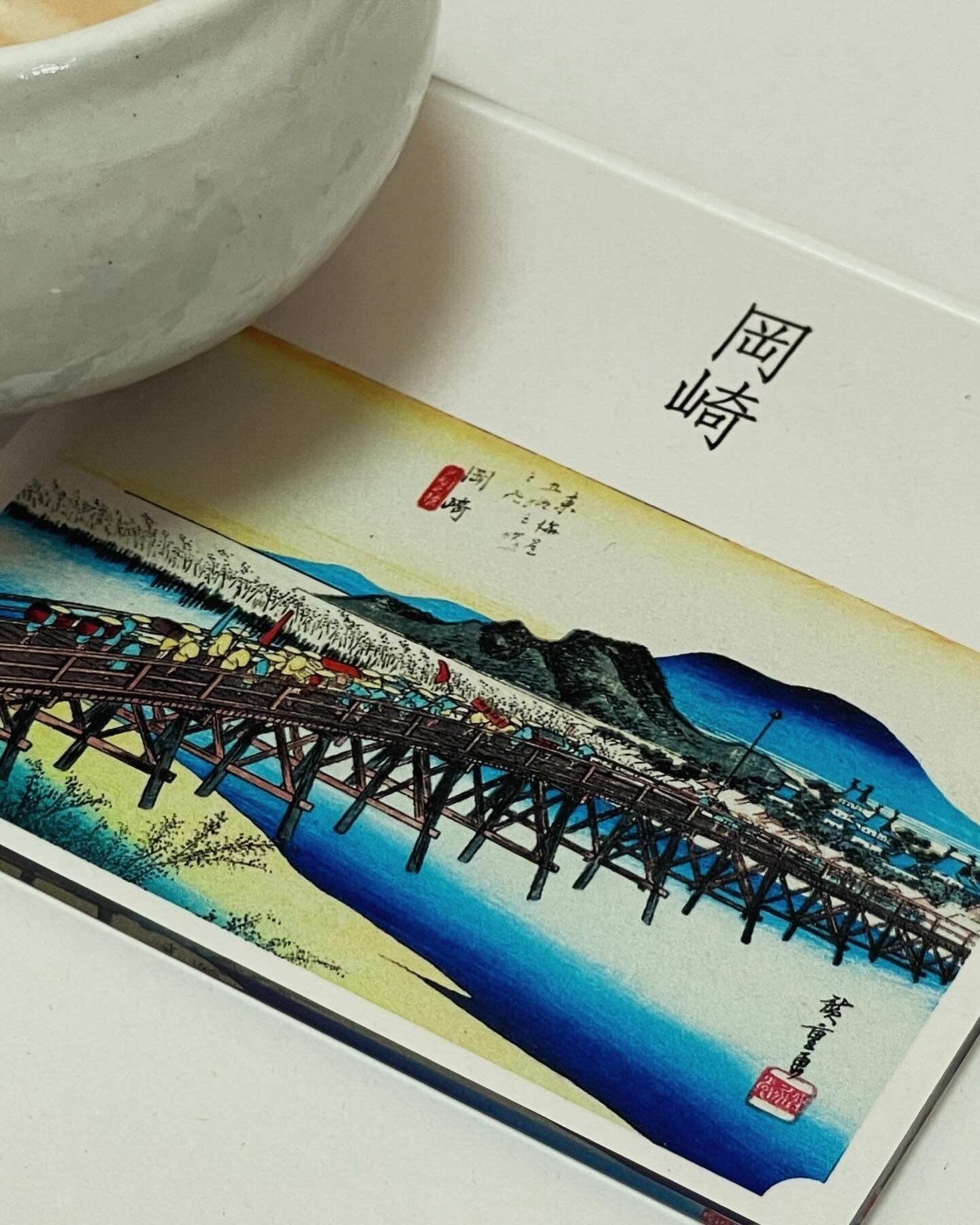 愛知県岡崎市に位置する宿場です。矢矧之橋は東海道内で最も長い橋とされています。橋の上に大名行列が並んでいて、橋の大きさと長さがよく分かります。岡崎は、徳川家康の出生地です。