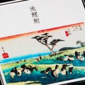 池鯉鮒(ちりゅう)は、愛知県岡崎市の宿場です。「首夏馬市」とは、池鯉鮒宿において行われた馬の市のことを指します。江戸時代の宿場町では、定期的に市が開かれ、地域の人々や商人が集まり、交易や商業活動が行われていました。