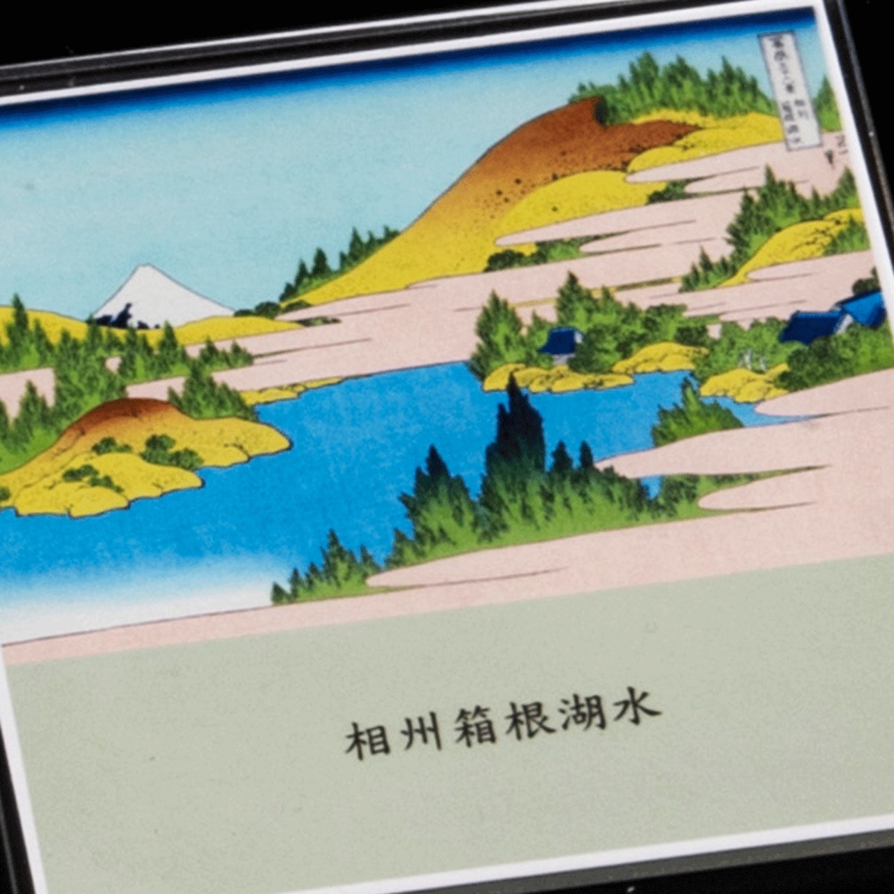 It depicts the quiet and majestic Lake Ashi, which can be seen beyond Mt. Hakone, the 'world's rock.'