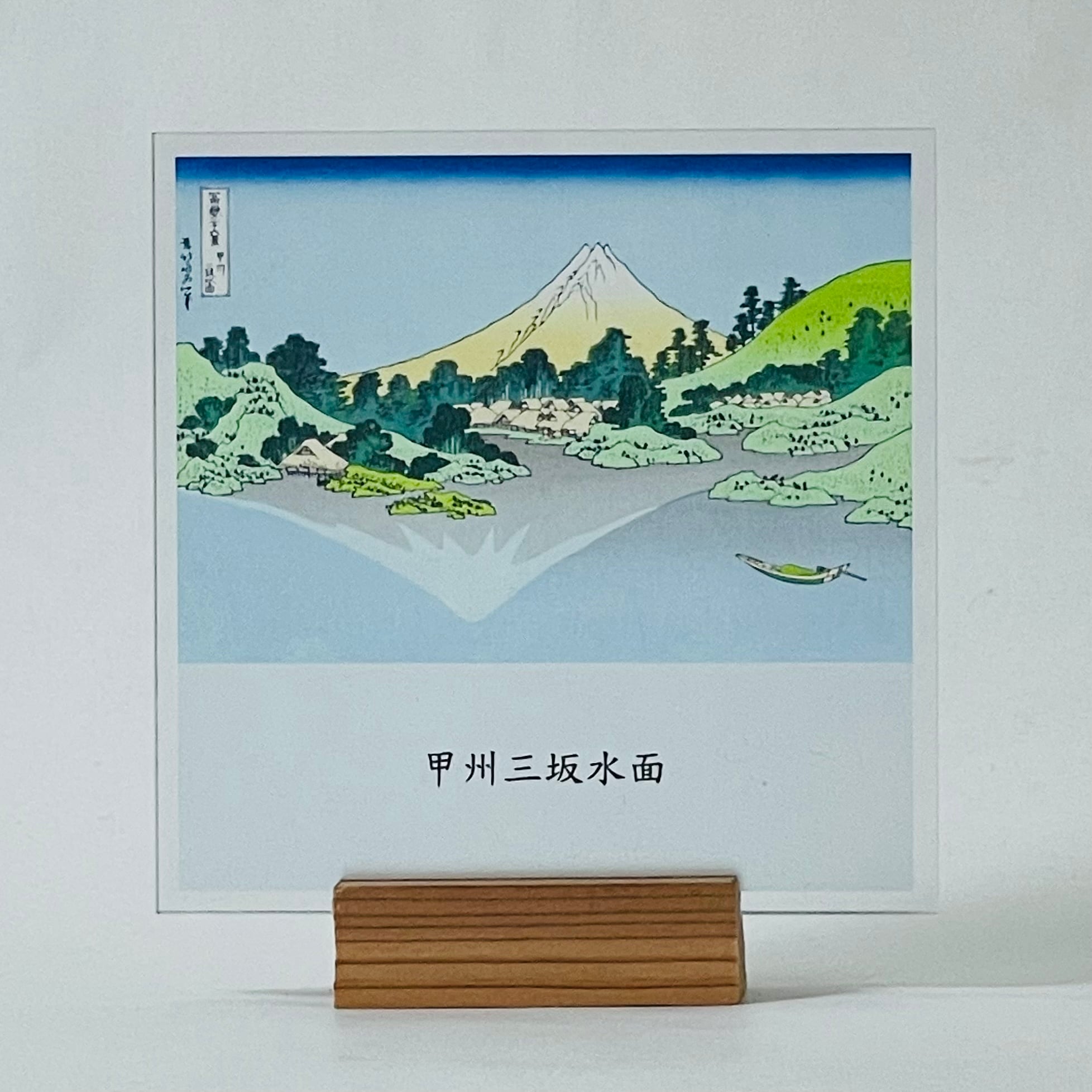 湖面に映りこむ富士の姿は「逆さ富士」と呼ばれ、北斎が描いた中でも人気の高い作品です。甲州三坂水面は、富士山を望む絶好の場所で、当時の旅人たちにとっても人気のありました。